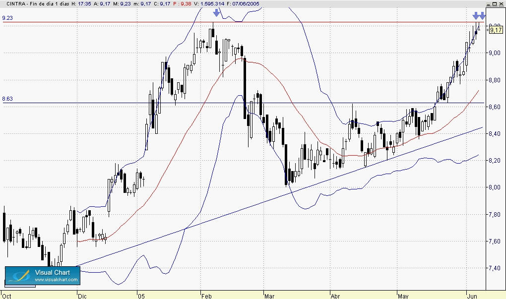 al calentón de su entrada en el ibex el valor rebotó desde la zona de control inferior y enfrentándose a zonas que pueden implicar entrar en "subida libre" cosa que sucederá si rompe los 9.25, los 9 euros se antojan complicados pero se la ve muy bien a cintra..